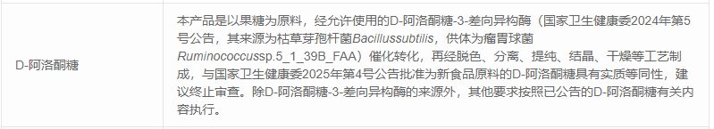 2025年7月2日(2025年第4号公告)において、D-プシコースは初めて新食品原料として正式に承認され、二種の製造方法が公示されました。