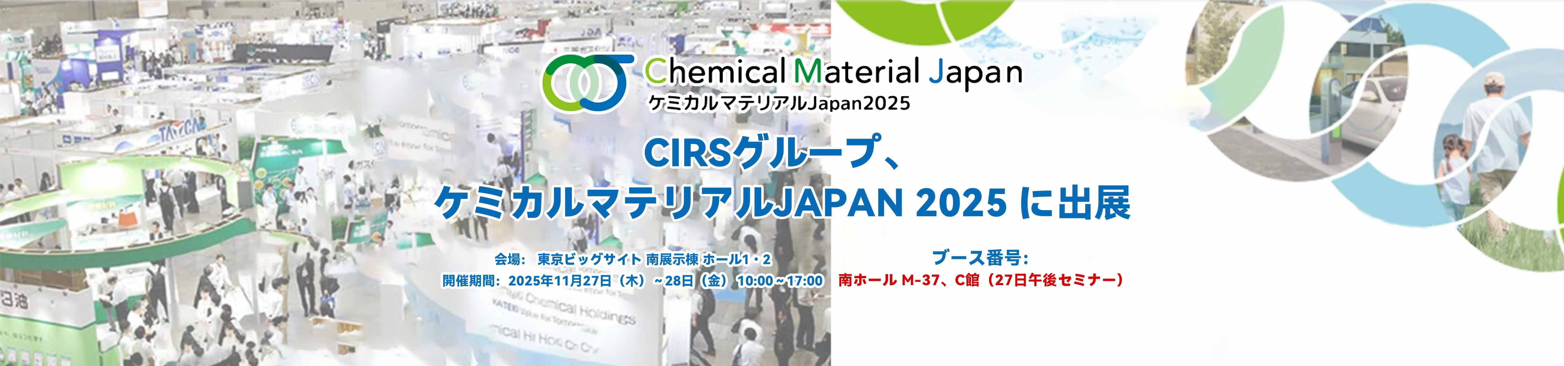 CIRSグループ、CIRSジャパン株式会社(本社:東京都中央区)は、2025年11月27日(木)~28日(金)2日間に東京ビッグサイト(東京都江東区有明3-11-1)で開催される「ケミカルマテリアルJAPAN 2025」に出展いたします。