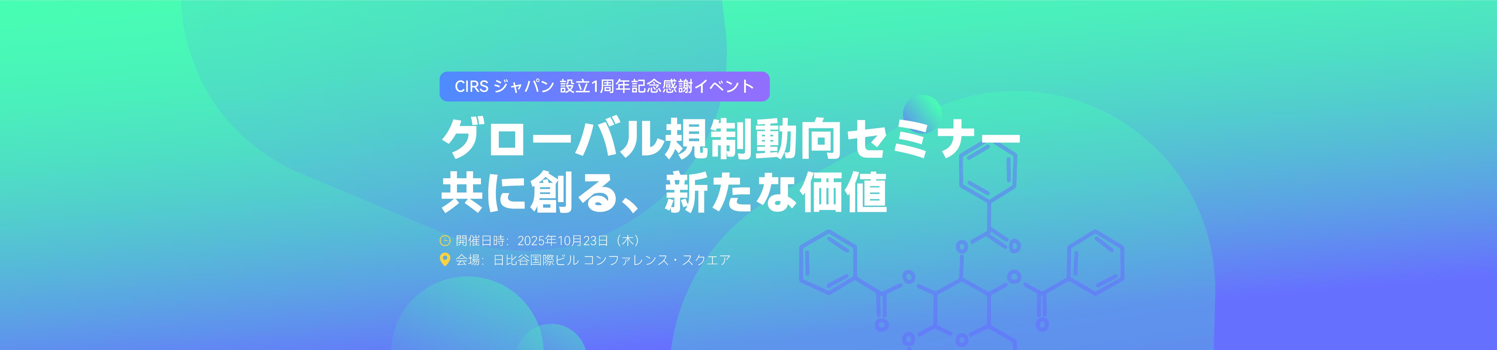 感謝の気持ちを込めて、そして今後のさらなる共創に向けて、CIRSジャパンは初めて日本国内にて「グローバル化学品規制動向セミナー」を開催いたします。