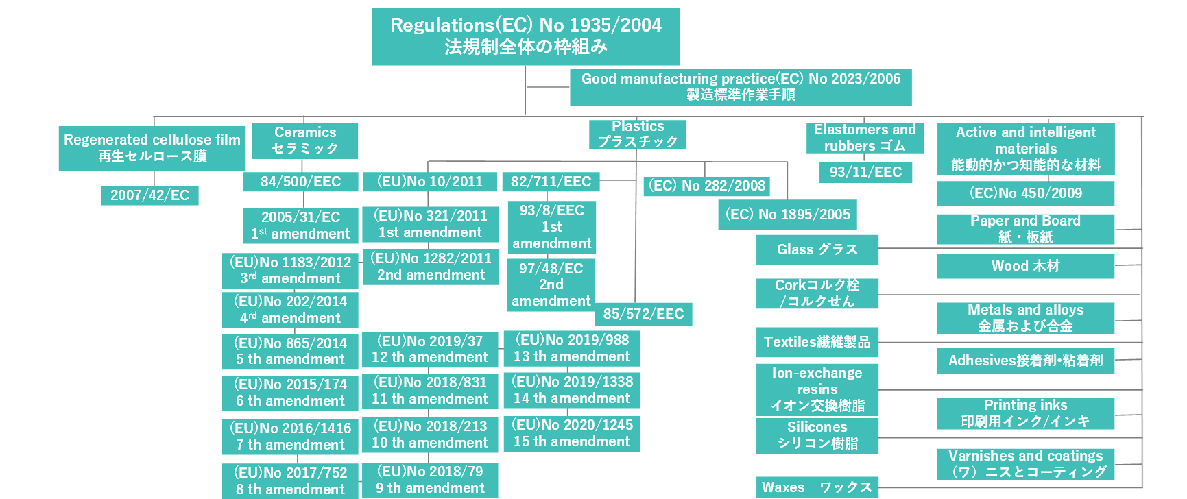 EUの食品接触材料に関する規制は、以下のようにさらに細分化されています。