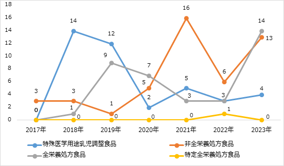 1. 2023年及び暦年特殊医学用途調整食品の認可件数