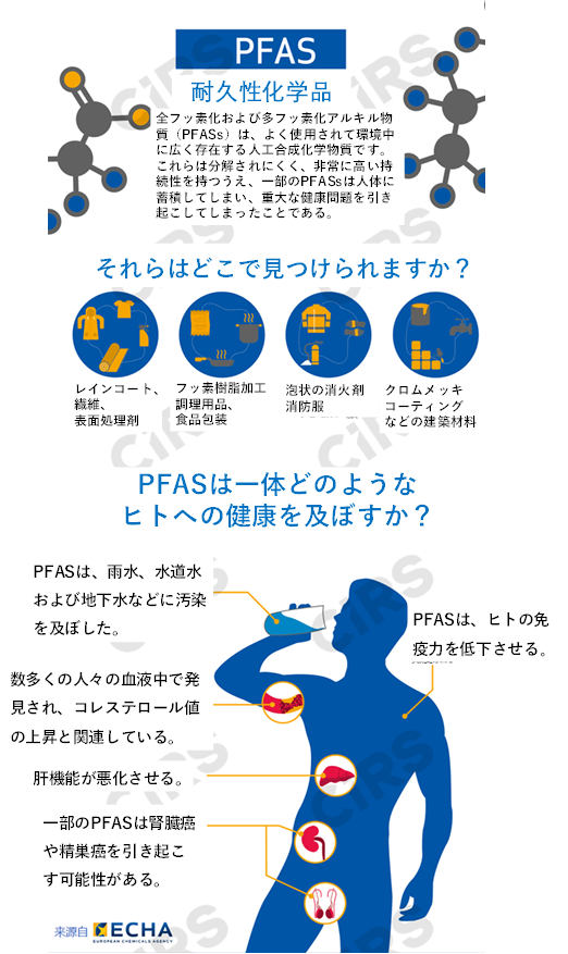 CIRS Testing は、各国・地域が相次いで制定または提案している環境規制について、繰り返し情報提供を行ってきました。これらの規制はすべて、同一の有害物質であるPFASs(ペルフルオロアルキル化合物およびポリフルオロアルキル化合物、PFCsとも呼ばれる)の使用を制限することを目的としています(関連情報は記事末尾をご覧ください)。最近の世界的な法規制の動向が活発化していることで、PFASへの注目度はますます高まっています。