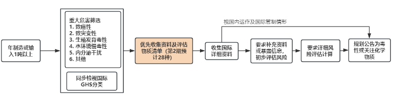 上述の計画枠組みに基づき、所管官庁は第2期において優先的に資料収集および評価を行う既存化学物質28種を一次選定しました(リストの詳細は「台湾化学物質登録プラットフォーム」を参照)。現在、これらの物質に関する国際的に公開された詳細な有害性情報の収集・精査を順次進めています。今後は「登録弁法」の改正手続きを開始し、第2期の計画枠組み、指定物質、および提出すべき資料項目などの内容を法規に盛り込み、法定手続きに従って利害関係者の意見を募集する予定です。
